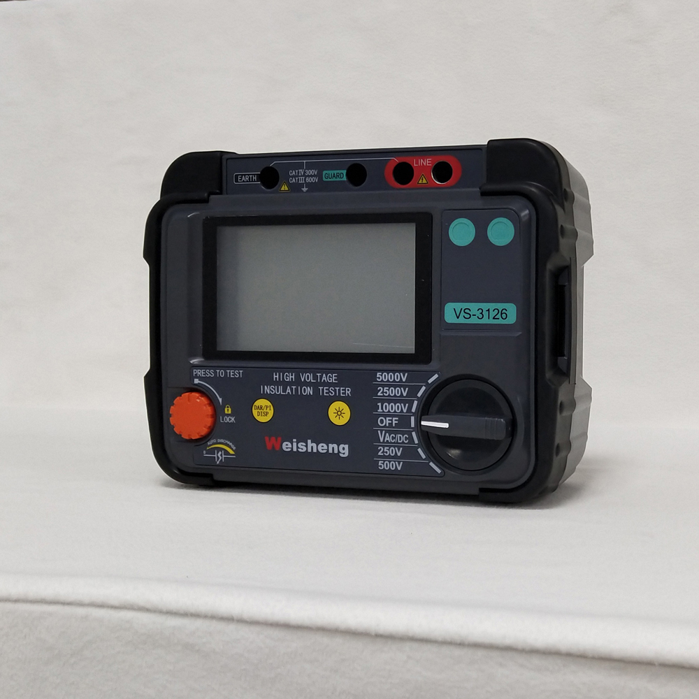 Weshine® VS-3126 はバッテリー駆動ですアナログ絶縁抵抗計デジタルおよびアナログのアーク ディスプレイを備え、ケーブル、回転プラント機械、変圧器、開閉装置および産業用アプリケーションのメンテナンスおよび保守における高電圧絶縁抵抗試験用に設計されています。